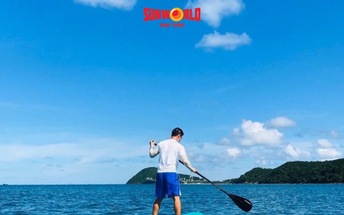 Chèo thuyền kayak là một trong những cách thú vị để khám phá trọn vẹn vẻ đẹp của Bãi Sao Phú Quốc. Bạn có thể tự mình chèo thuyền ra xa bờ một chút, tận hưởng không gian yên tĩnh và ngắm nhìn toàn cảnh bãi biển từ một góc nhìn mới.
